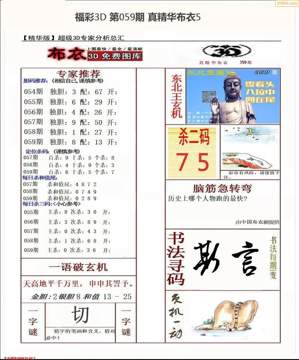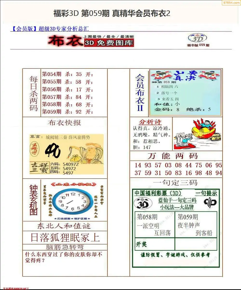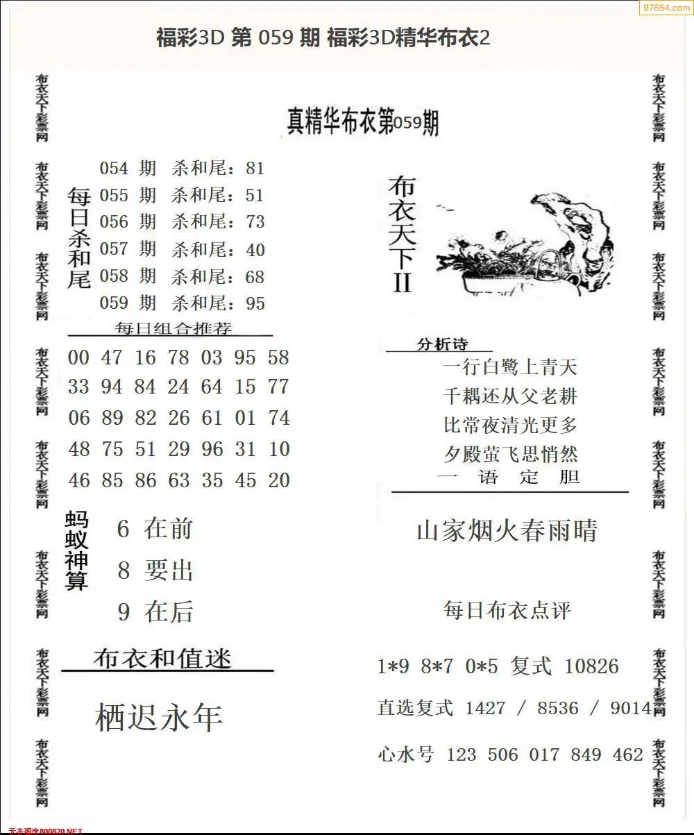 福彩059期3d真精华布衣+布衣早报(转载)