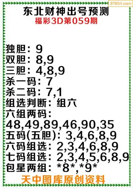 3d原创059期东北财神预测