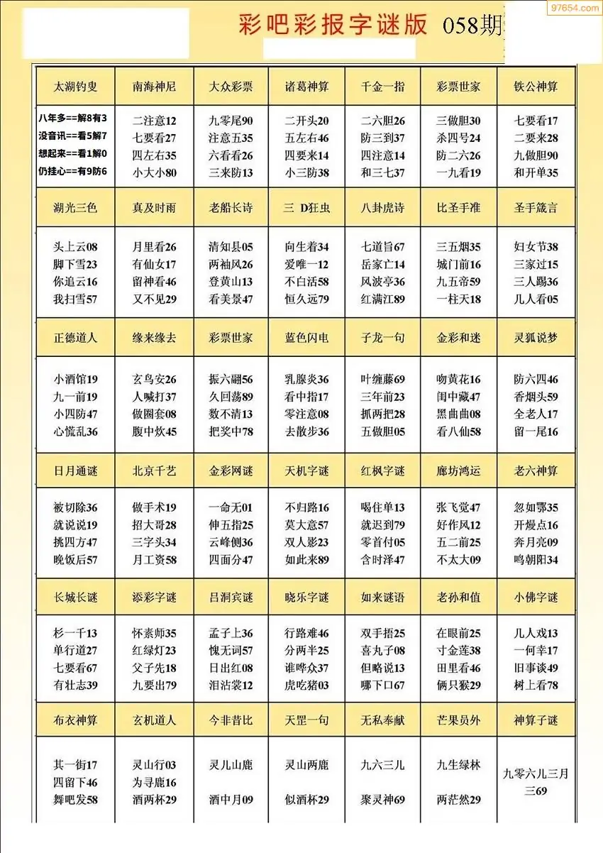 059期3D牛彩预测报+彩吧字谜报