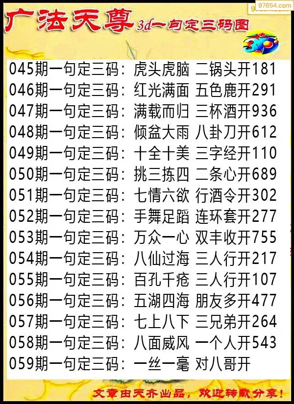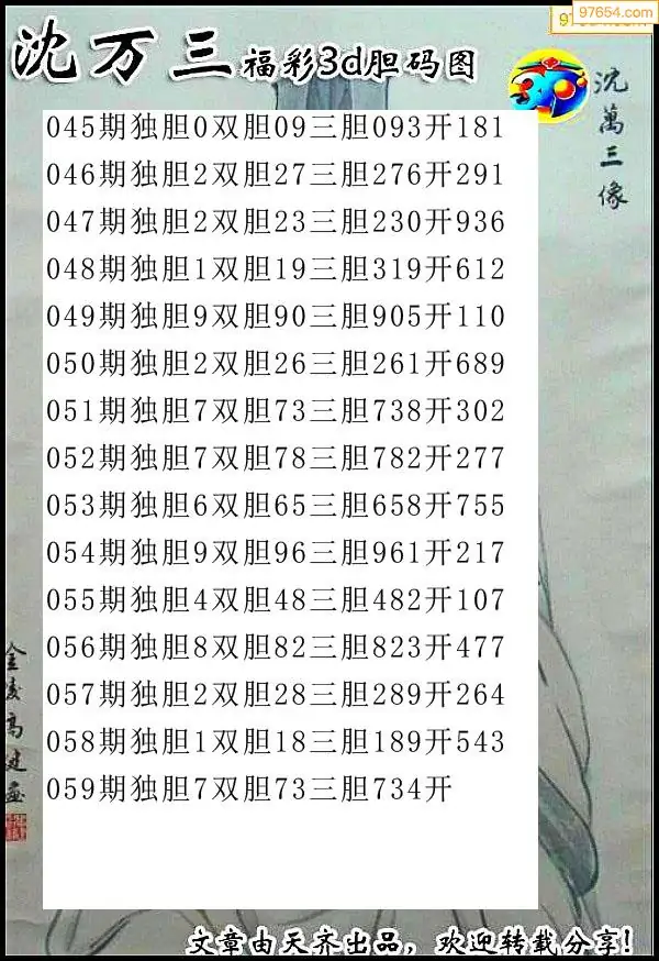 059期97654本站收集胆码出号预测