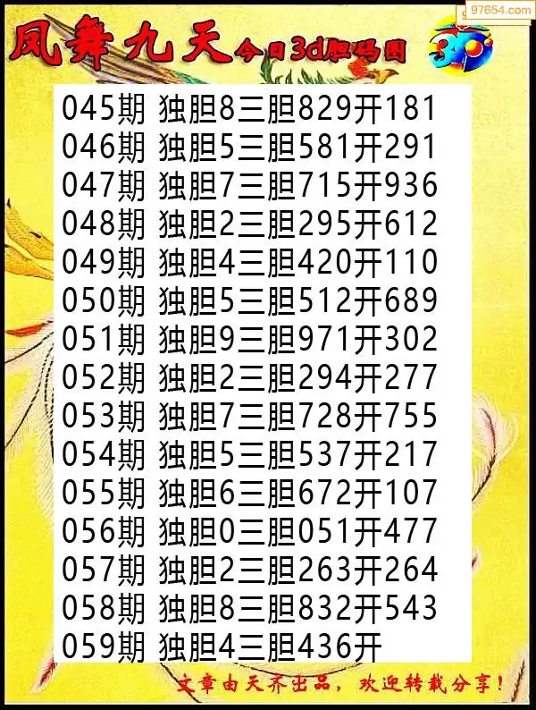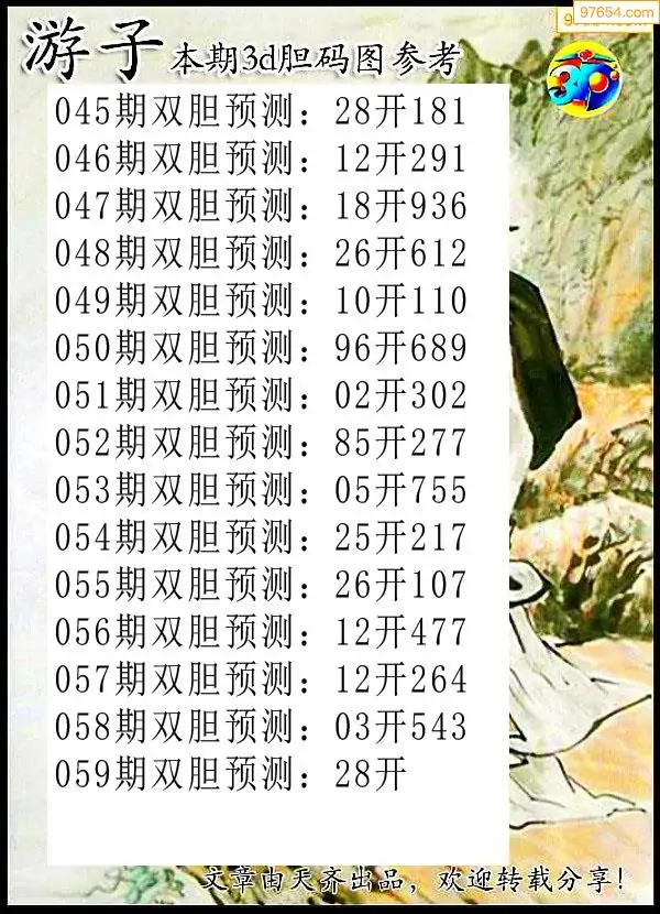 天齐网3d26年059期胆码图 胆:87