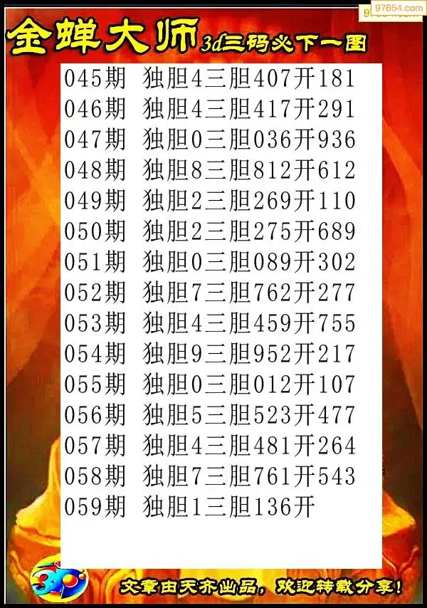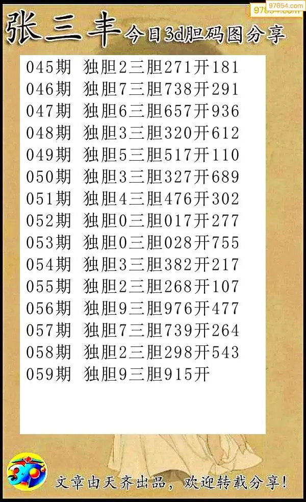 26059期布衣独胆_福彩3d胆码图今天