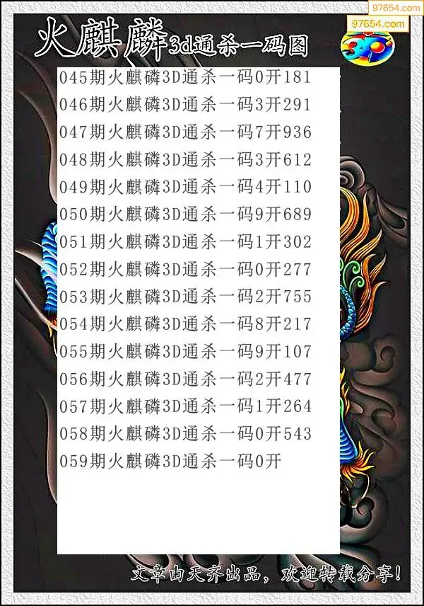 天齐网3d26年059期杀码图 杀:30