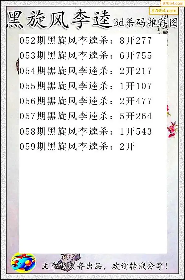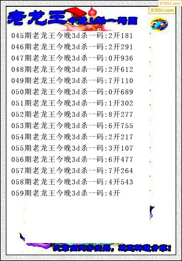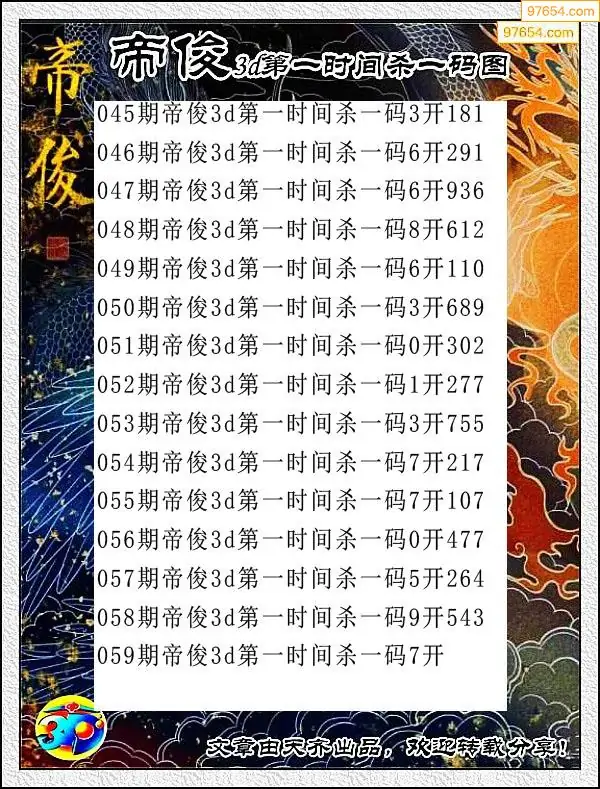 2026058期3D大帝每日杀一码图