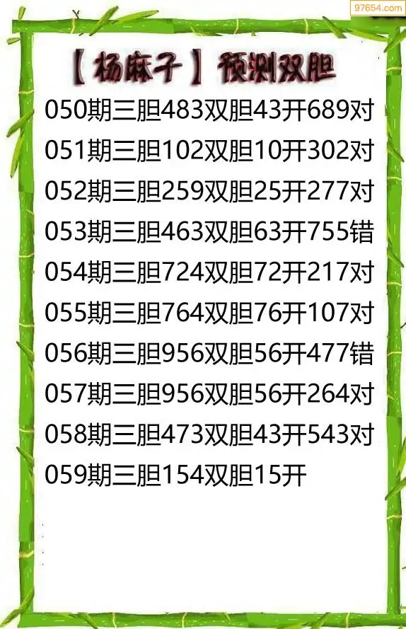 26059期杨麻子_福彩胆码计算方法