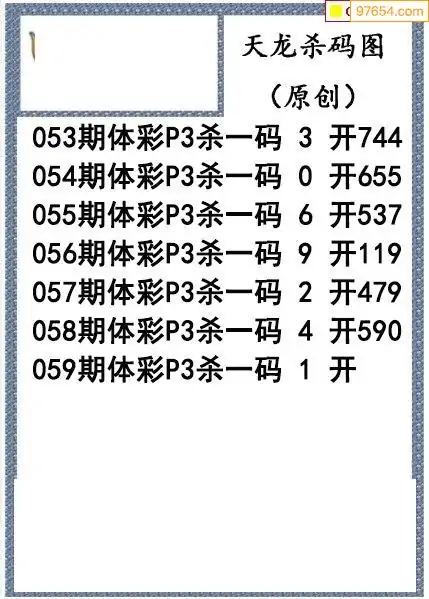 26年059期天龙体彩P3杀码图谜