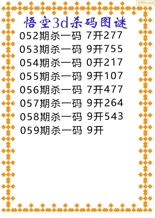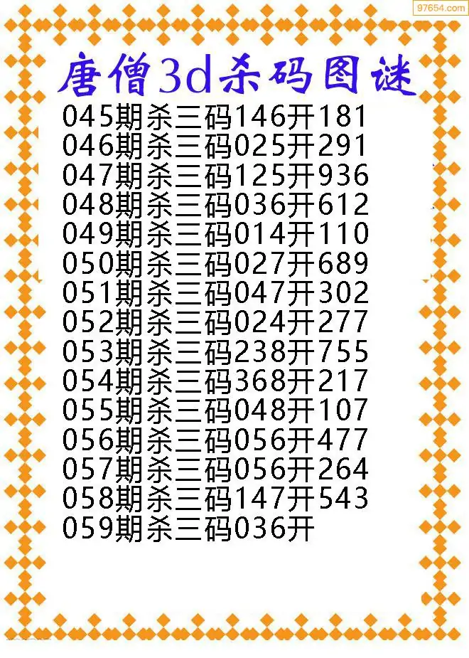 (3)2026058期3D预测总汇全图_福彩3d图谜字谜总汇