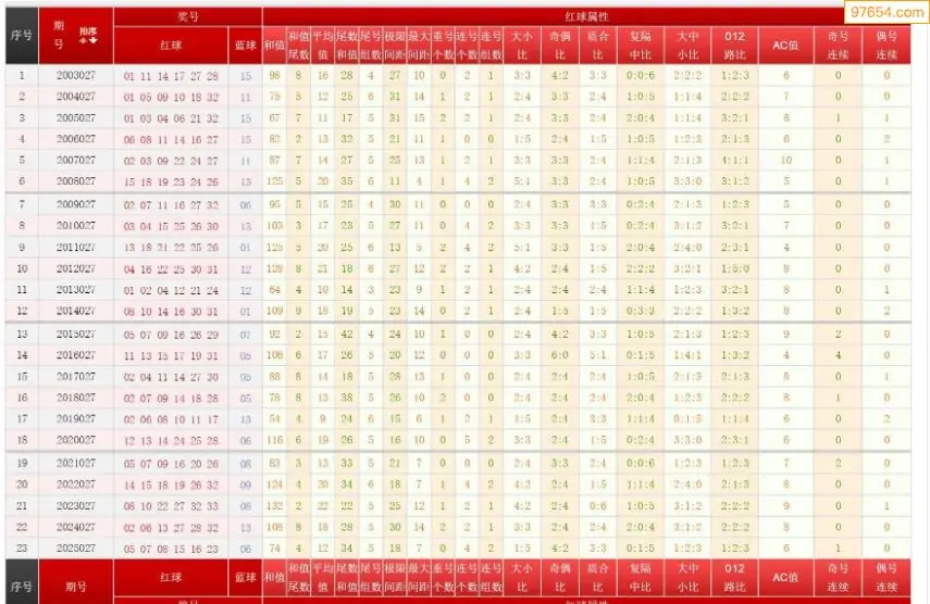 027期双色球历史同期图表+走势图