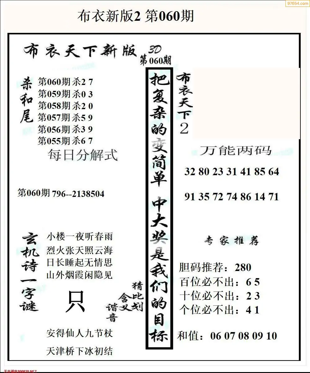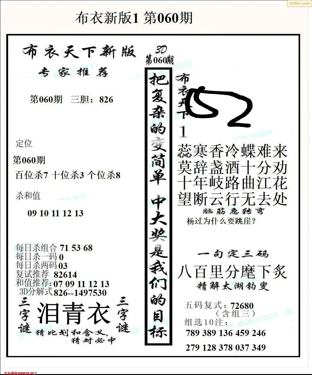 26060期早版布衣天下3D图迷