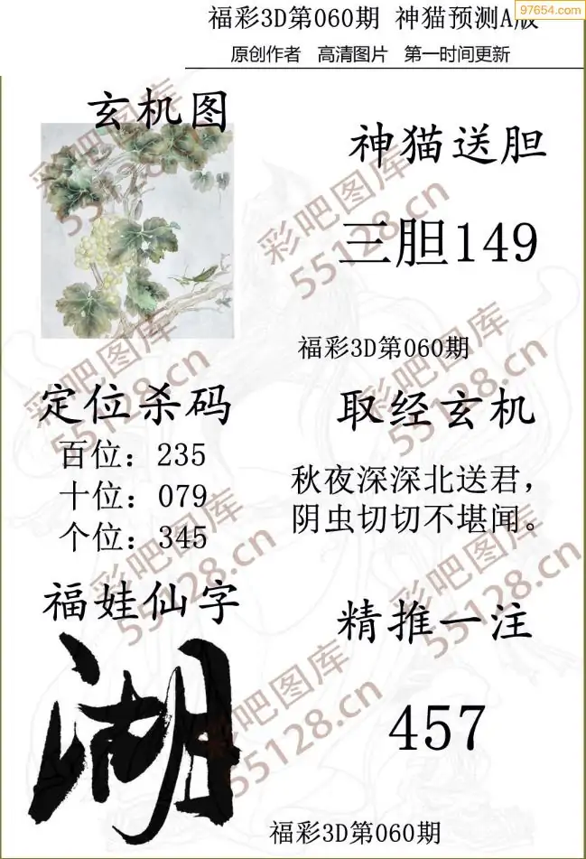 福彩3D060期天牛彩吧套图整合总汇