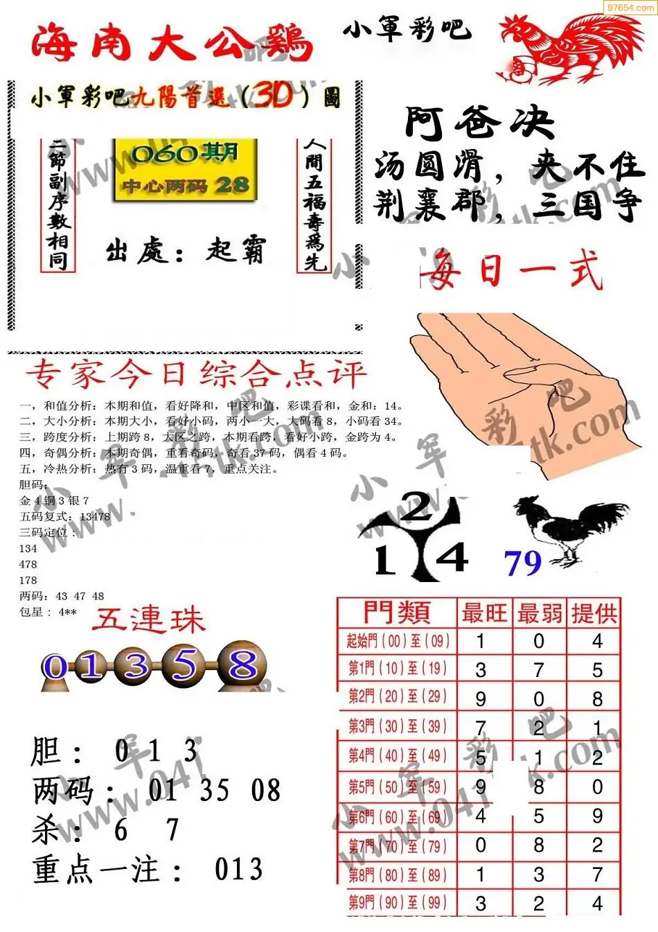 福彩3D060期天牛彩吧套图整合总汇