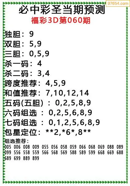 原创彩圣分析060期3D出号规律