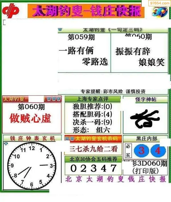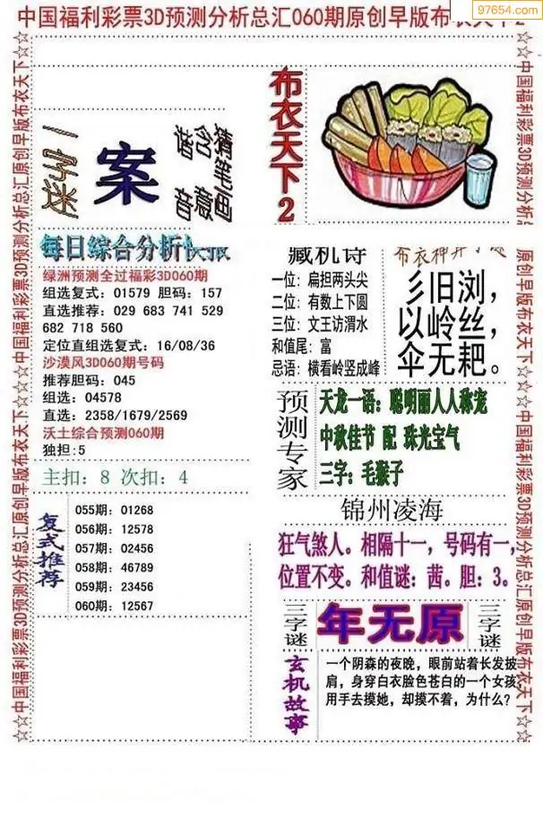 福彩3D060期天牛彩吧套图整合总汇