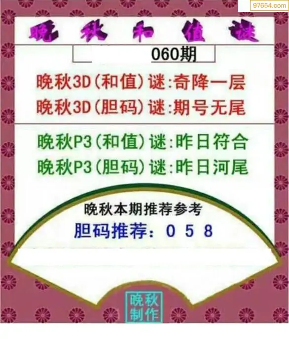 26060期晚秋和值谜胆码推荐