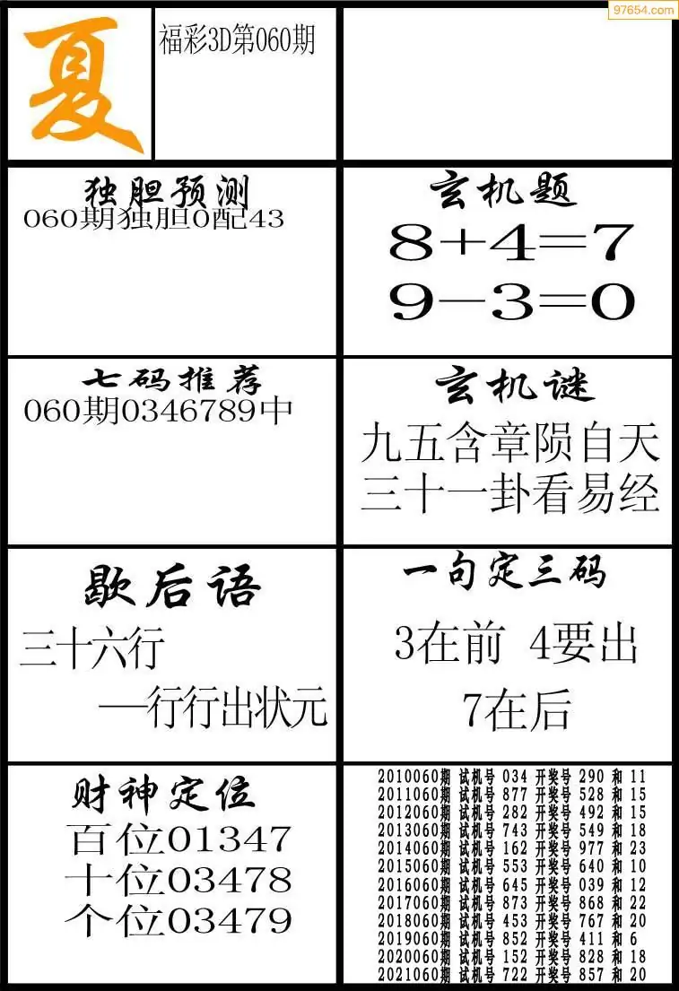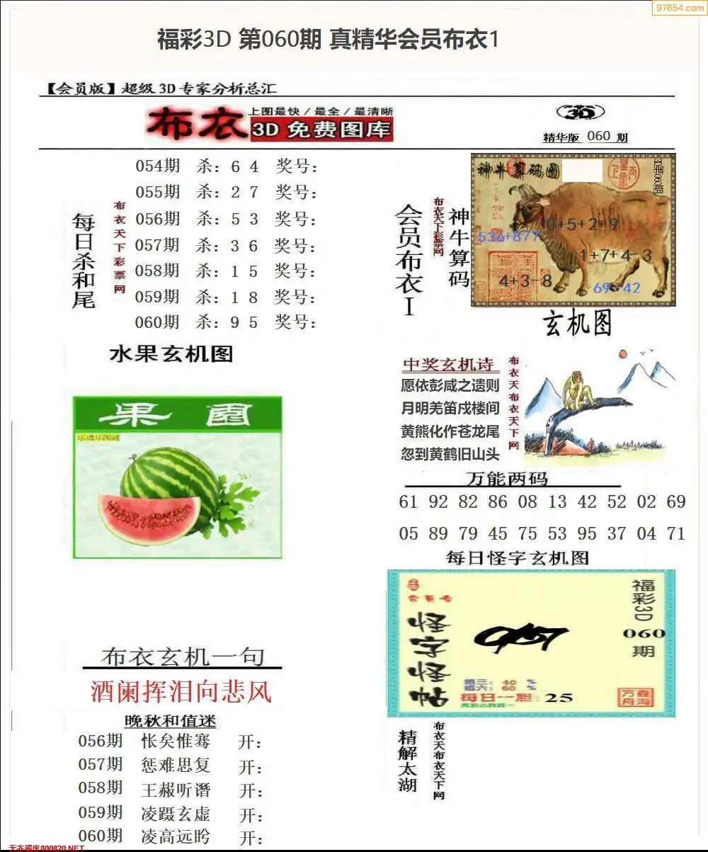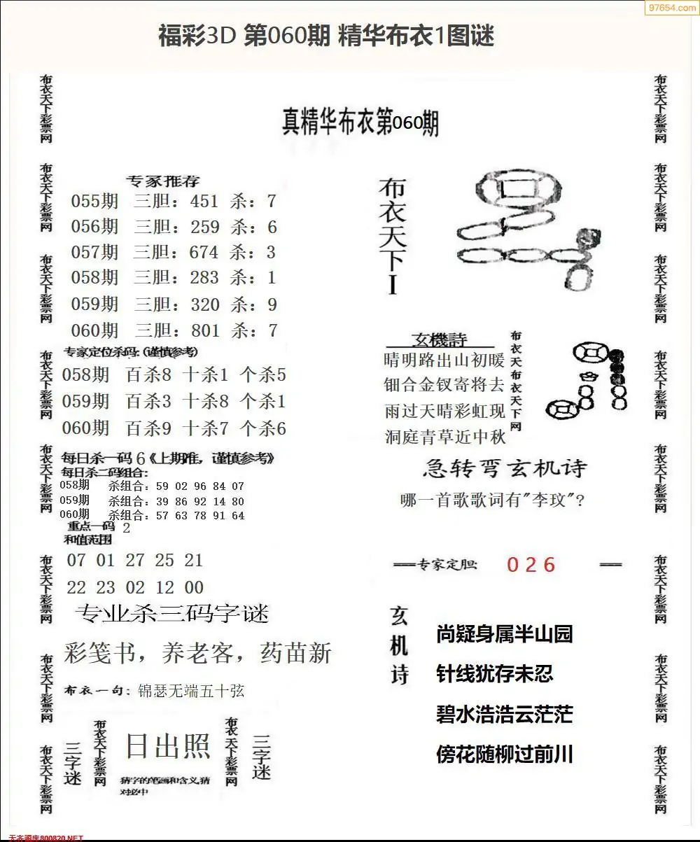(2)26年060期本期3d图迷汇总_福彩3D图谜总汇图