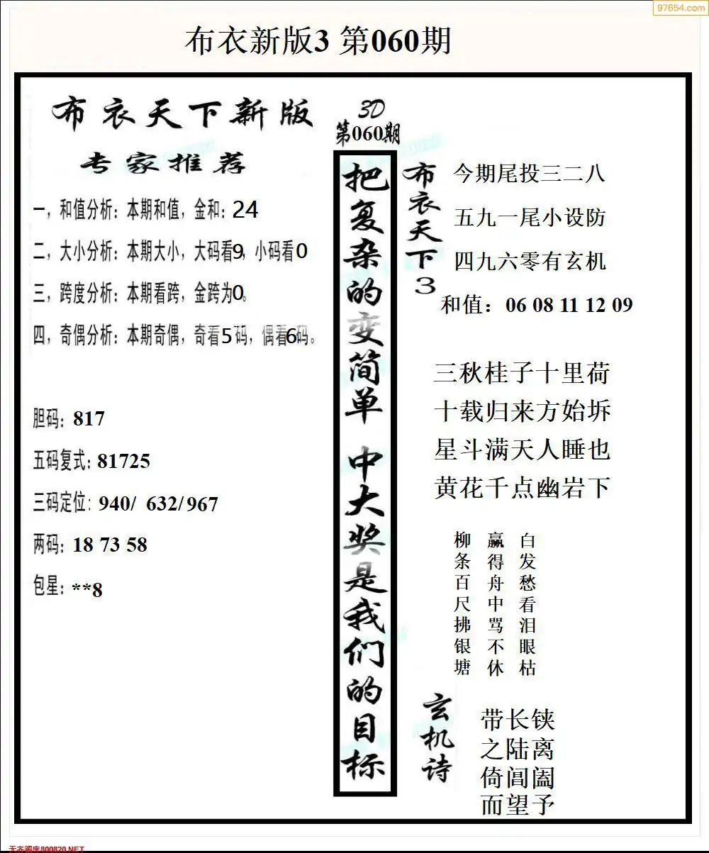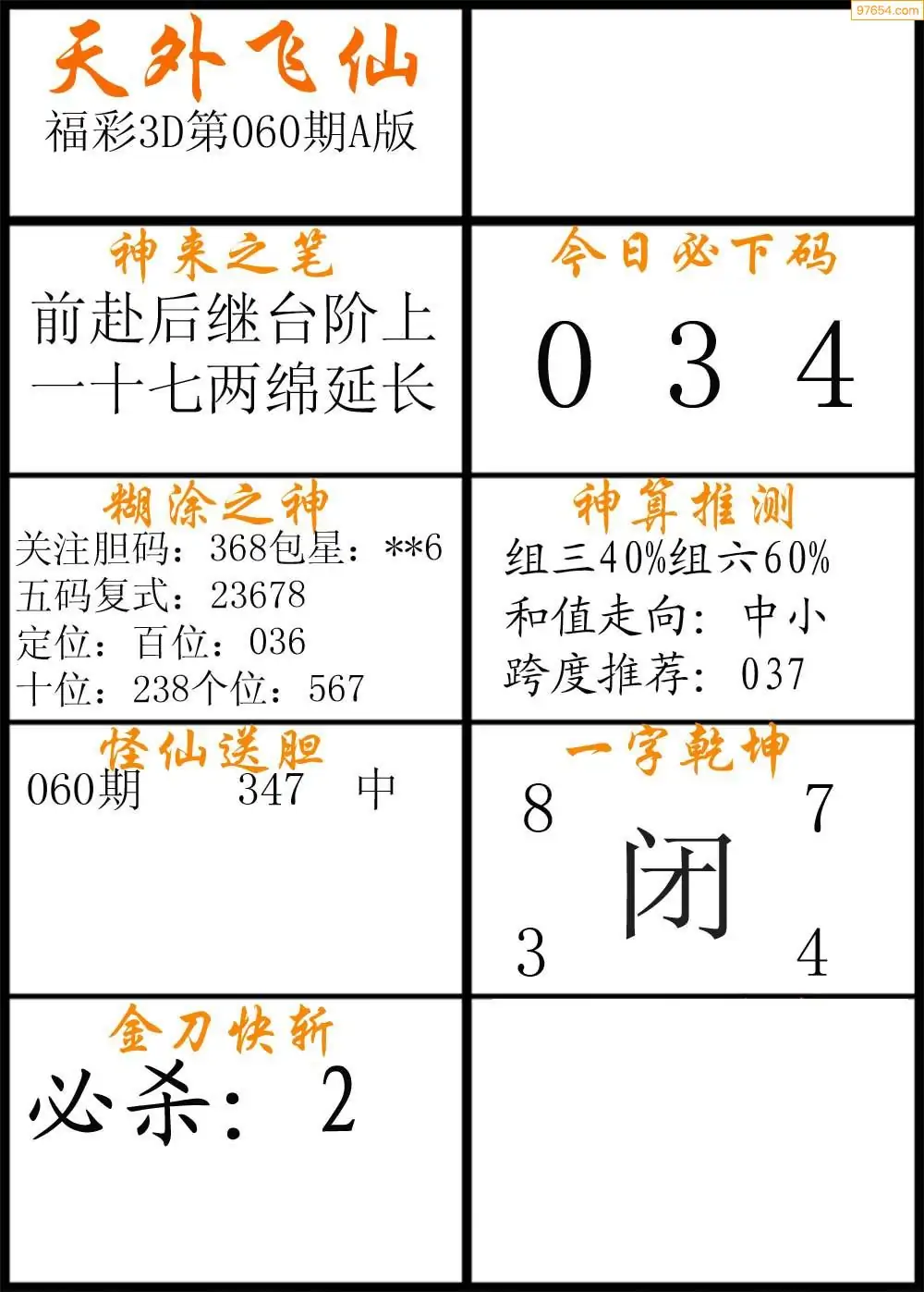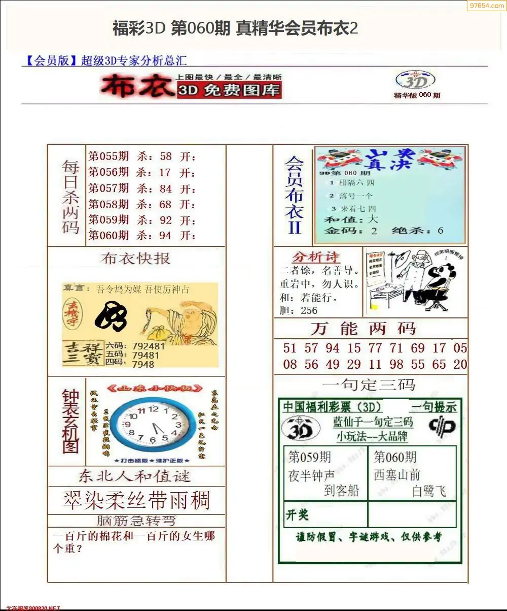 (2)26年060期本期3d图迷汇总_福彩3D图谜总汇图