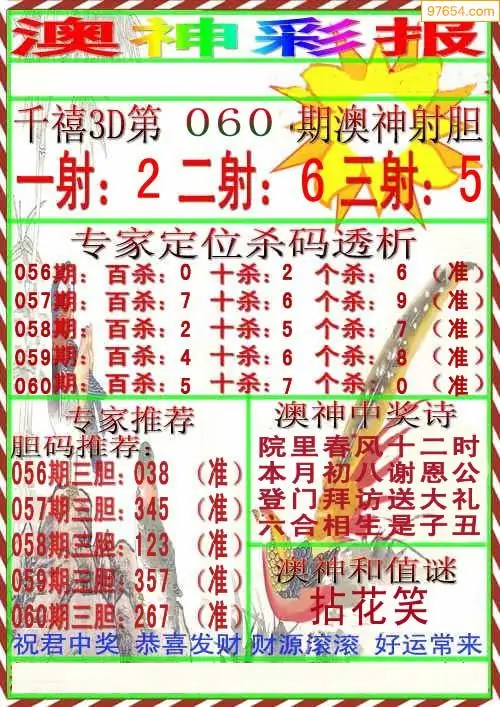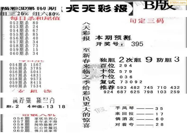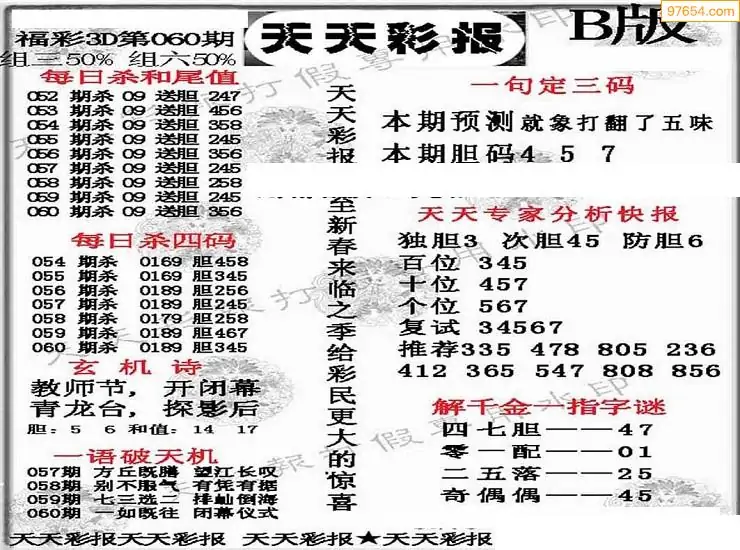 (8)26年060期今日3d各类彩报汇总