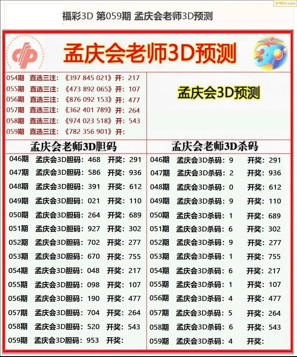 (8)26年059期今日3d各类彩报汇总