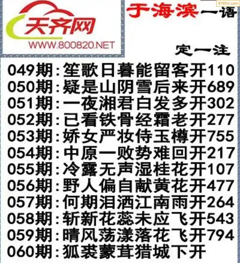 26年060期3D诗歌财神一语定一注