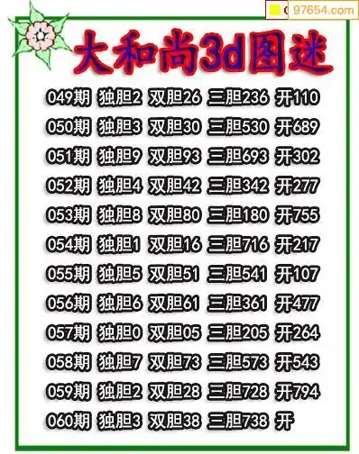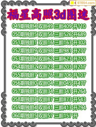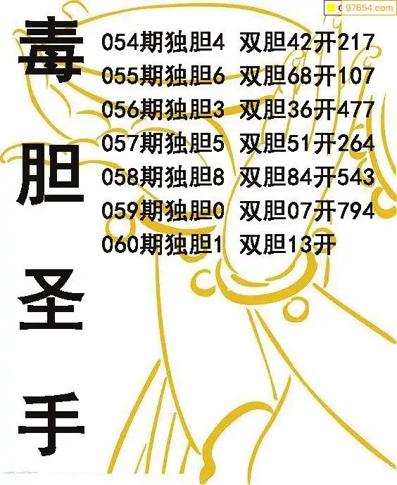 060期97654本站收集胆码出号预测