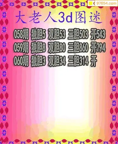 2026060期彩彩网3d原创图迷搜集(天中整理)