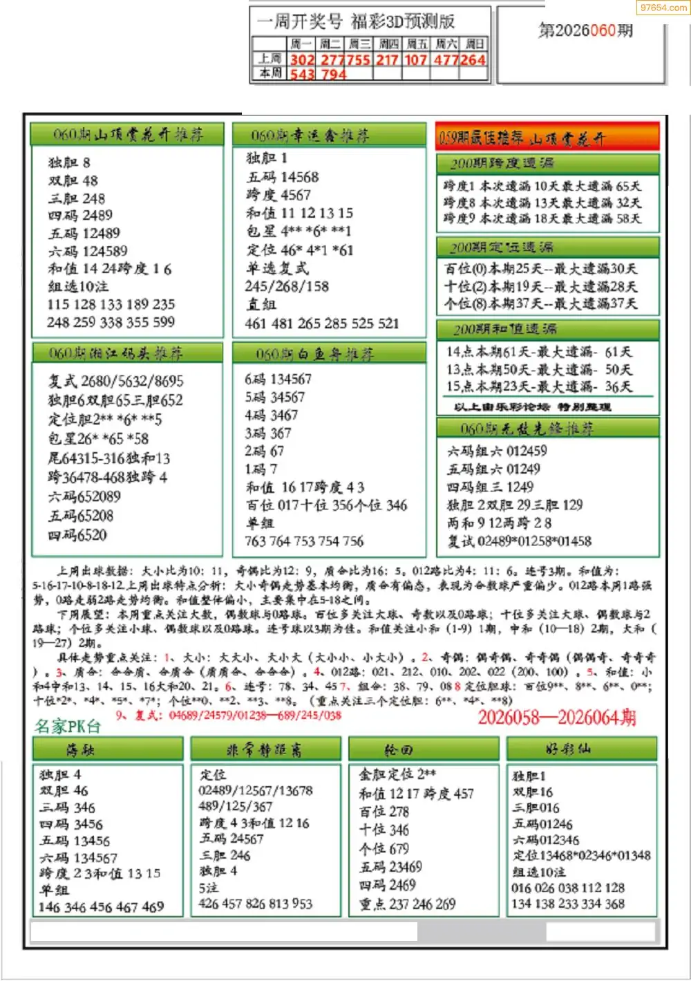 26年060期3D各板块资料整合汇总