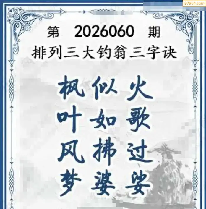 26年体彩p3第060期大钓翁三字诀