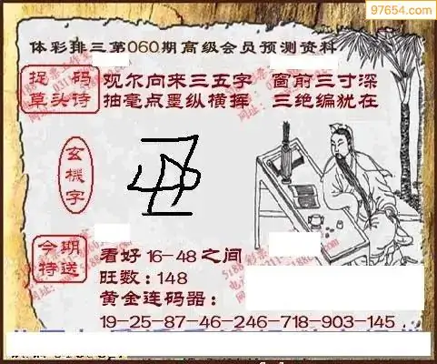 26年天吉体彩P3玄机怪字064期图迷