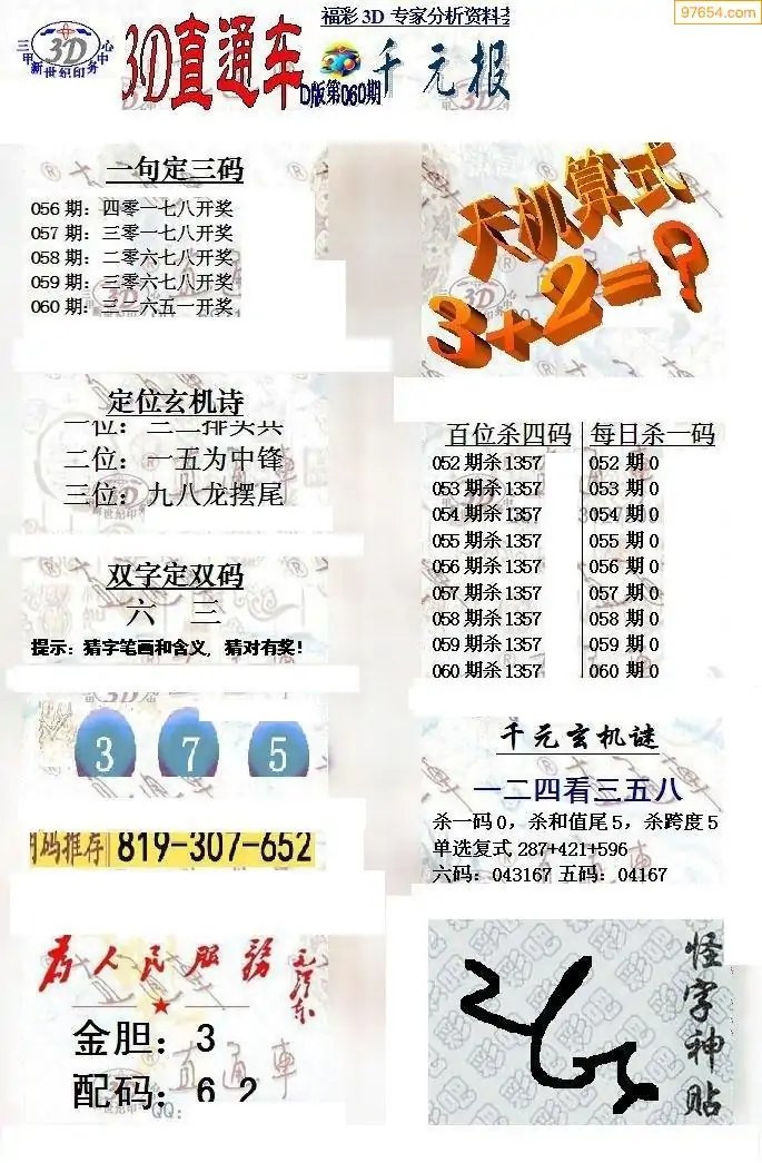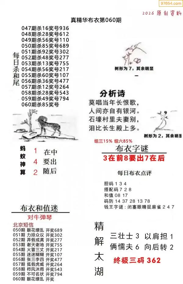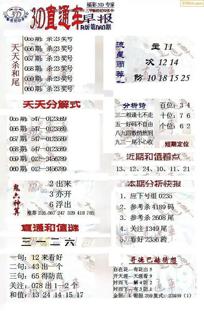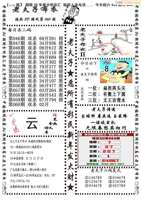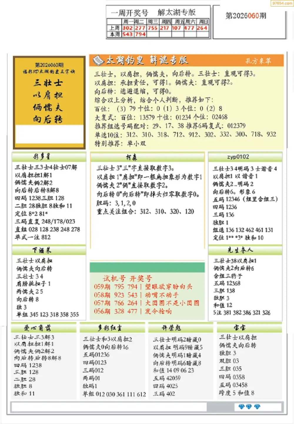 (2)26年060期本期3d图迷汇总_福彩3D图谜总汇图