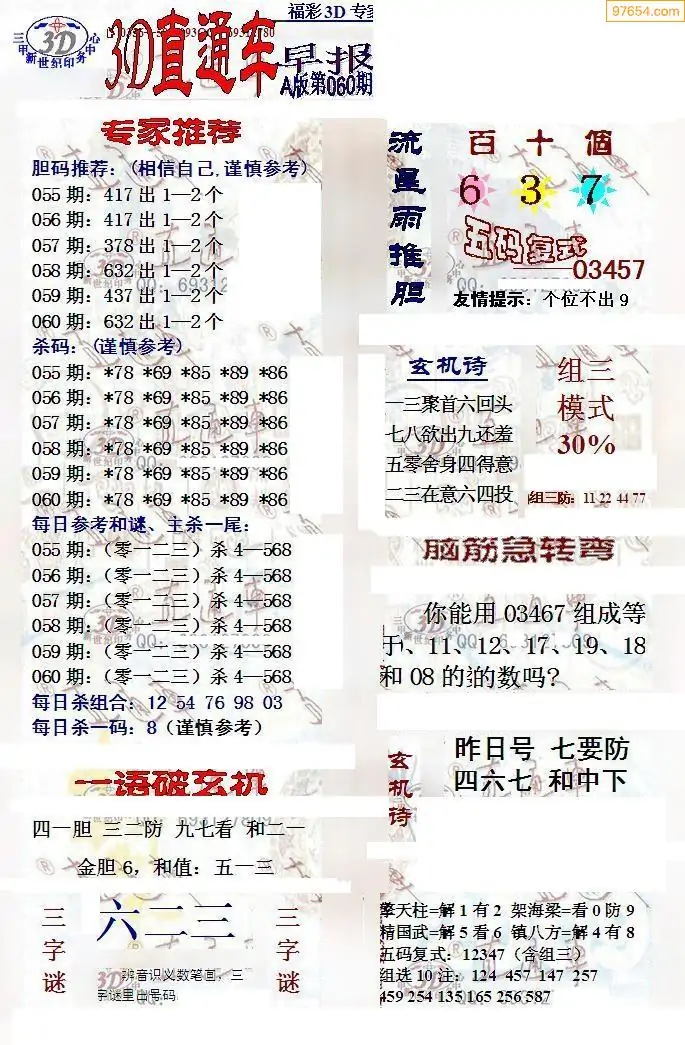 (3)2026060期3D预测总汇全图_福彩3d图谜字谜总汇