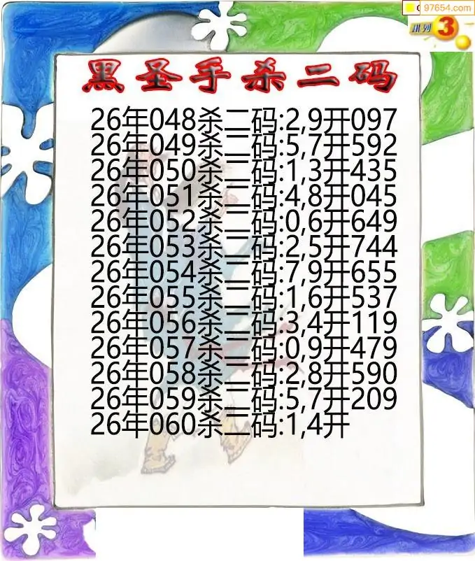 26年060期黑圣手排3杀二码图迷
