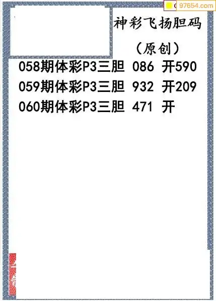 26060期神彩飞扬体彩P3三胆图谜