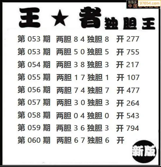 062期97654本站收集胆码出号预测