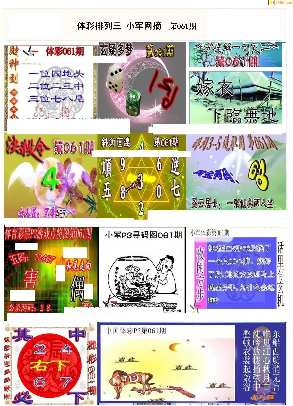 2026061期彩友图迷汇总_图迷汇总排列3图谜汇总考辑牛彩网