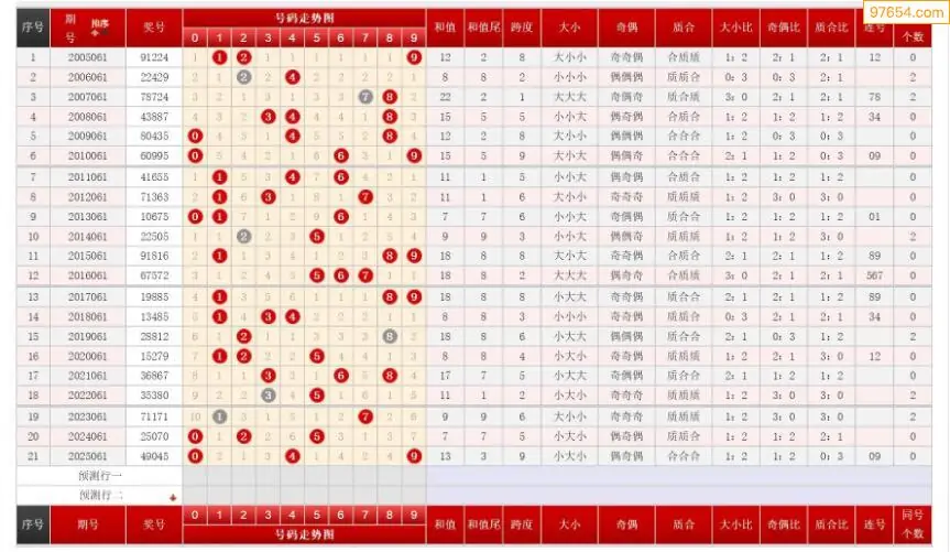 061期排列三历史号码对比图+数据走势分析