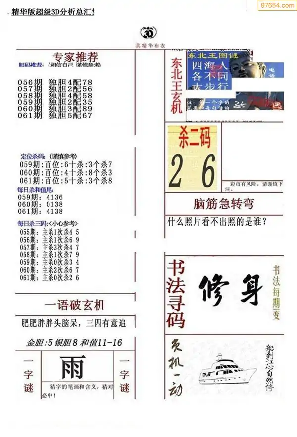 26061期早版布衣天下3D图迷