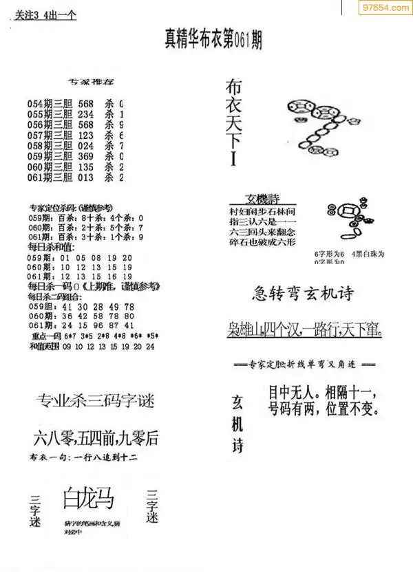 福彩061期3d真精华布衣+布衣早报(转载)