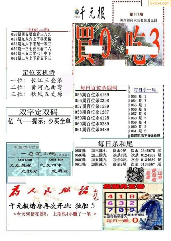 26年061期千元报每日推荐(新版)