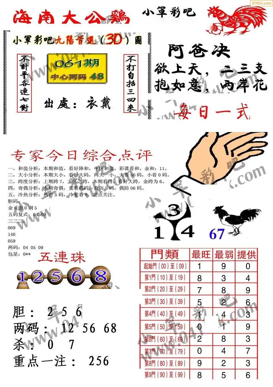 福彩3D061期天牛彩吧套图整合总汇