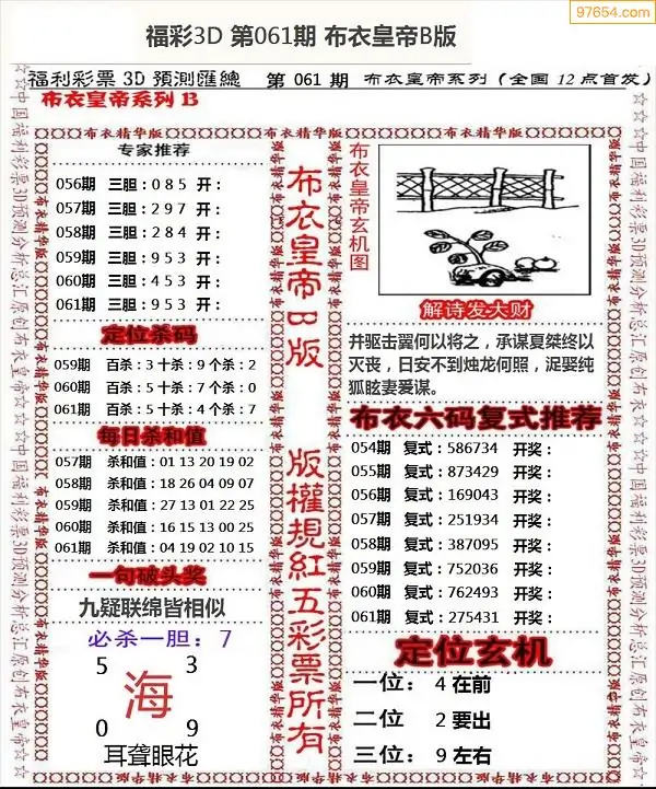 福彩061期3d真精华布衣+布衣早报(转载)
