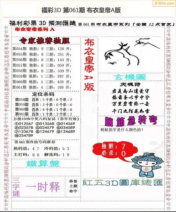 26061期3D布衣皇帝AB(正版)