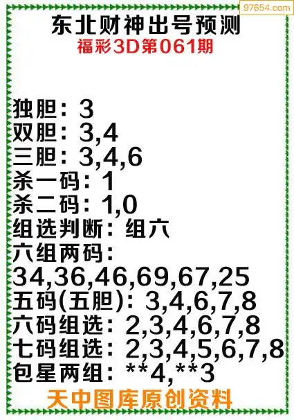 3d原创061期东北财神预测