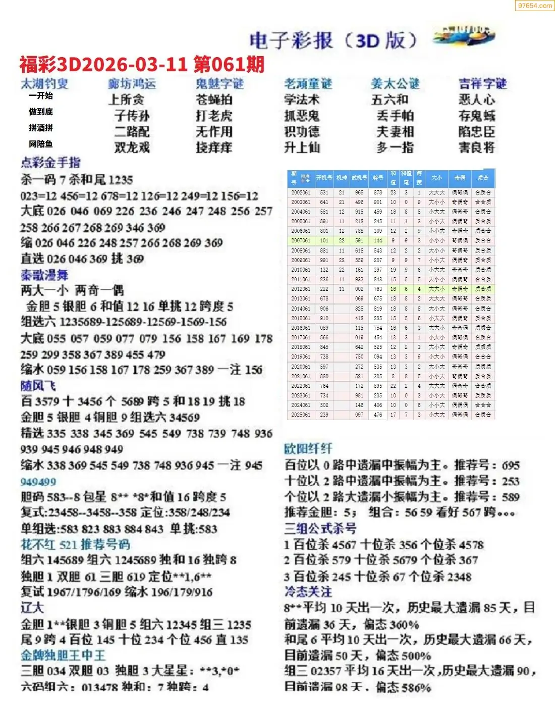 26年061期3D各板块资料整合汇总