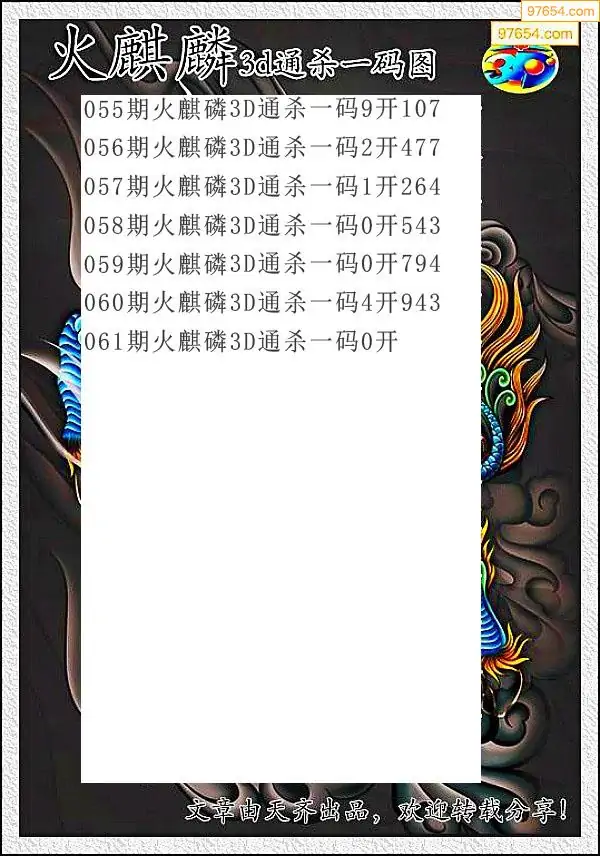 2026060期福彩火麒麟杀码图