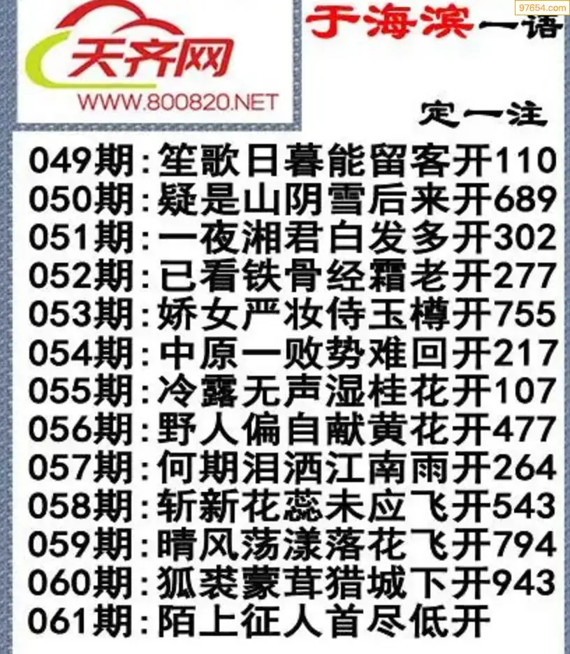 于海滨福彩3D26061期一语定一注