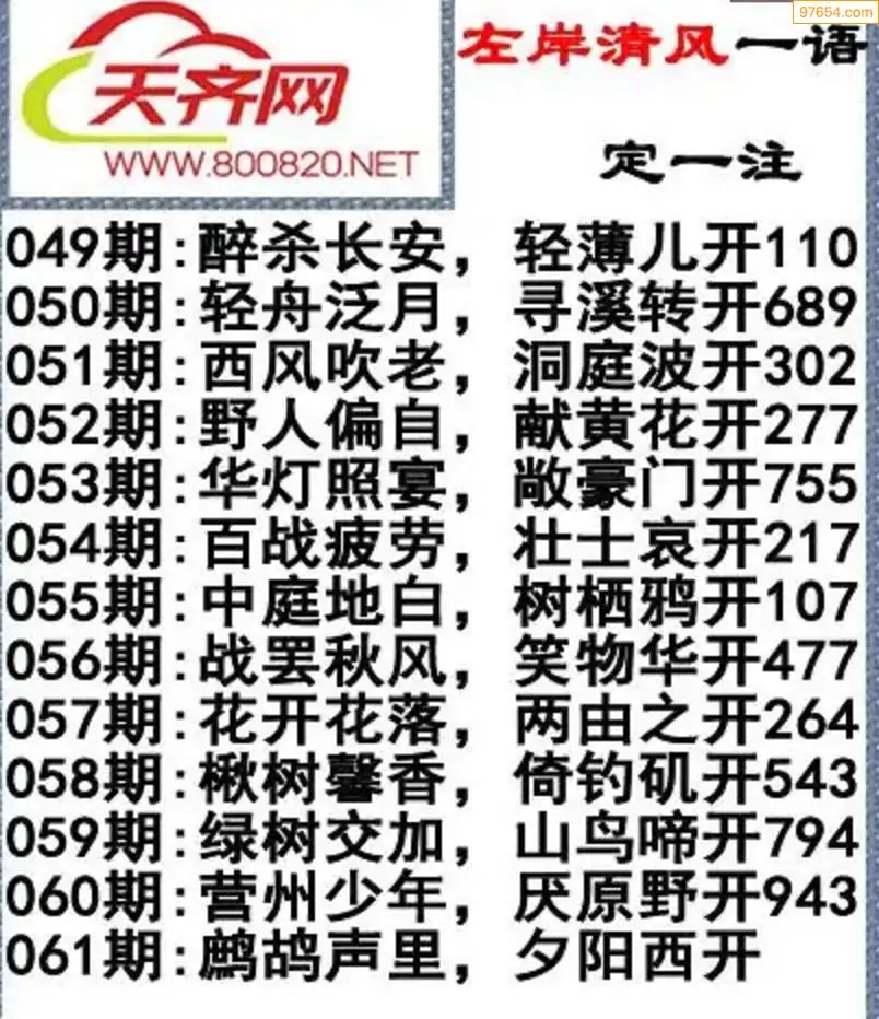 福彩3d左岸清风26年061期一语定一注