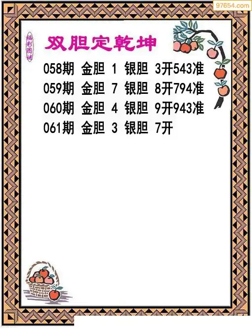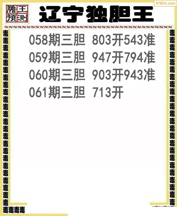 061期97654本站收集胆码出号预测