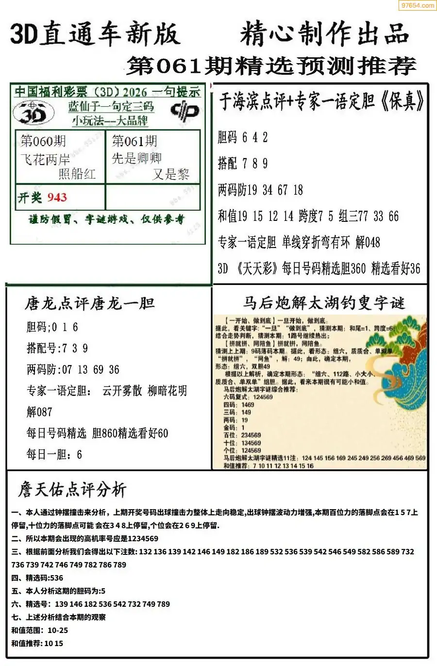 26年062期3D各板块资料整合汇总
