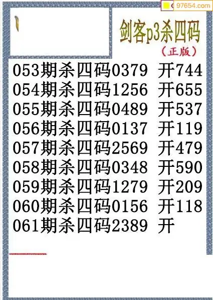 26年061期排三剑客杀码图谜