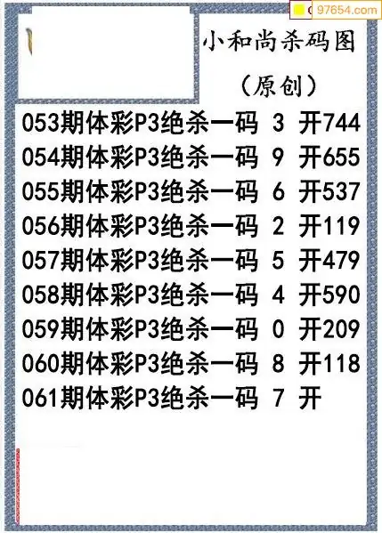 26年061期小和尚排列3杀码图